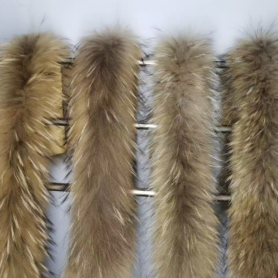 卸売りのタヌキの毛の襟の毛の条の服装の補助材料のダウンジャケットの帽子の襟の毛の本色の毛皮のdiy材料