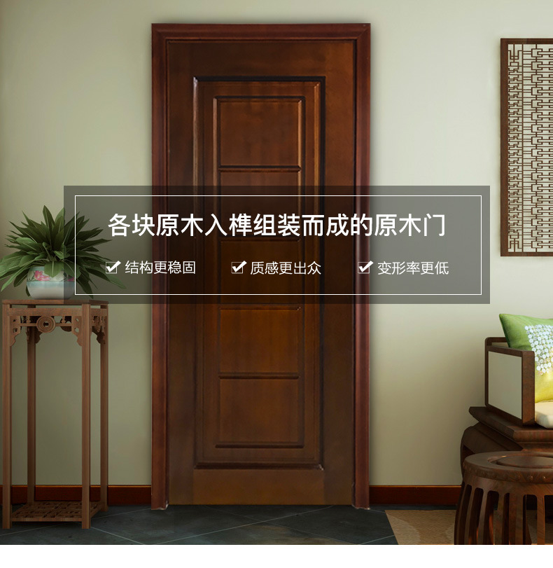 新中式ウォールナット無垢材玄関ドア室内寝室ルームドア浴室キッチン木製ドア無垢材フルセットドア