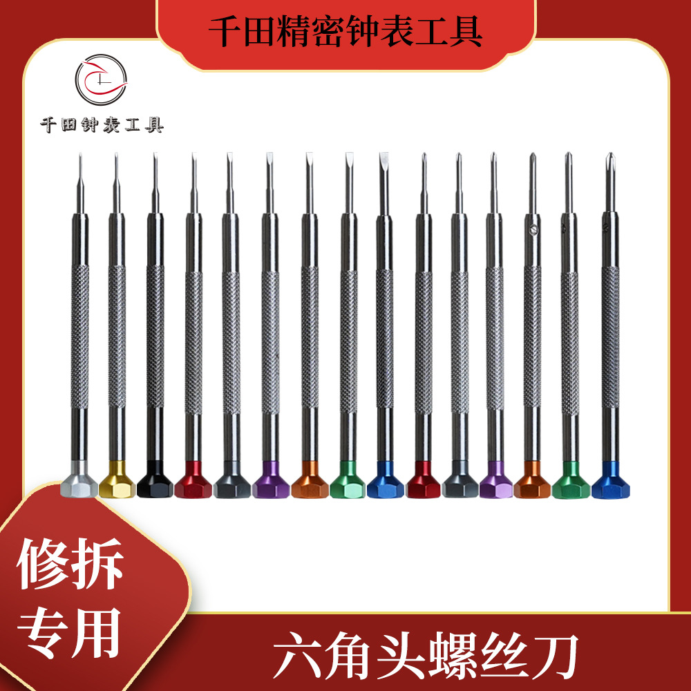 Qian Tian 時計修理ツール 六角頭ドライバー ワンラインクロス時計修理ドライバー 完全な仕様と厳選