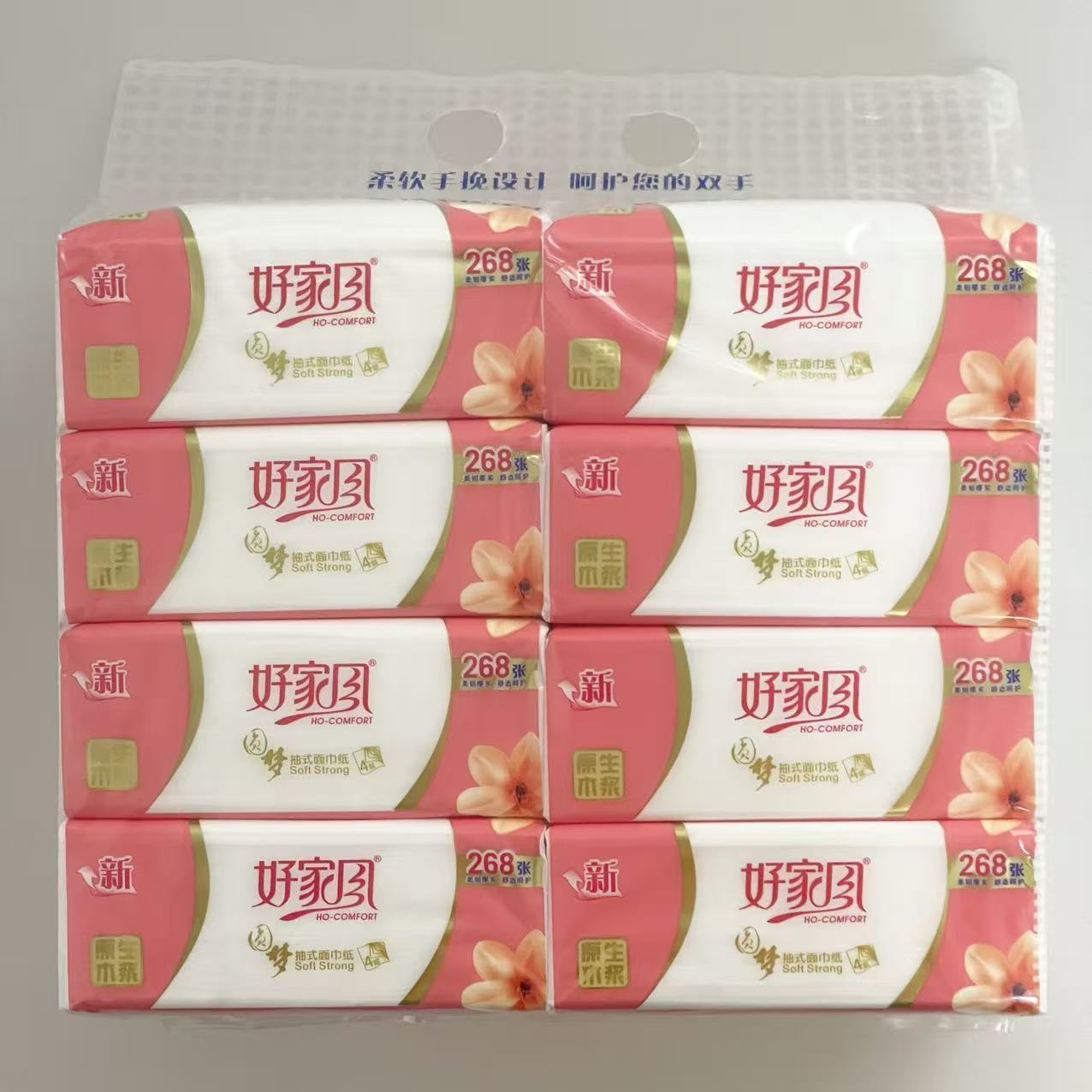 好家风抽纸批发8包300张抽式纸面巾软抽原生木浆餐巾纸厂家直批