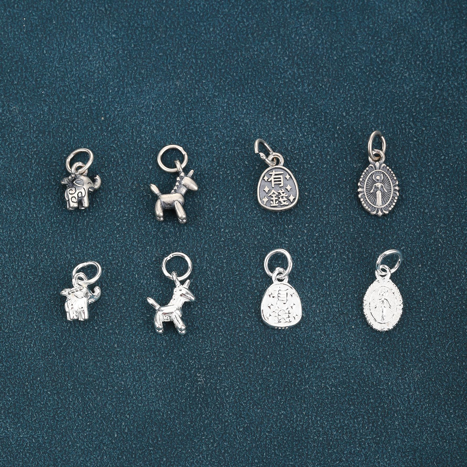 S925纯银小飞象吊坠小马独角兽挂件有福有钱圣母玛丽亚小提溜配件