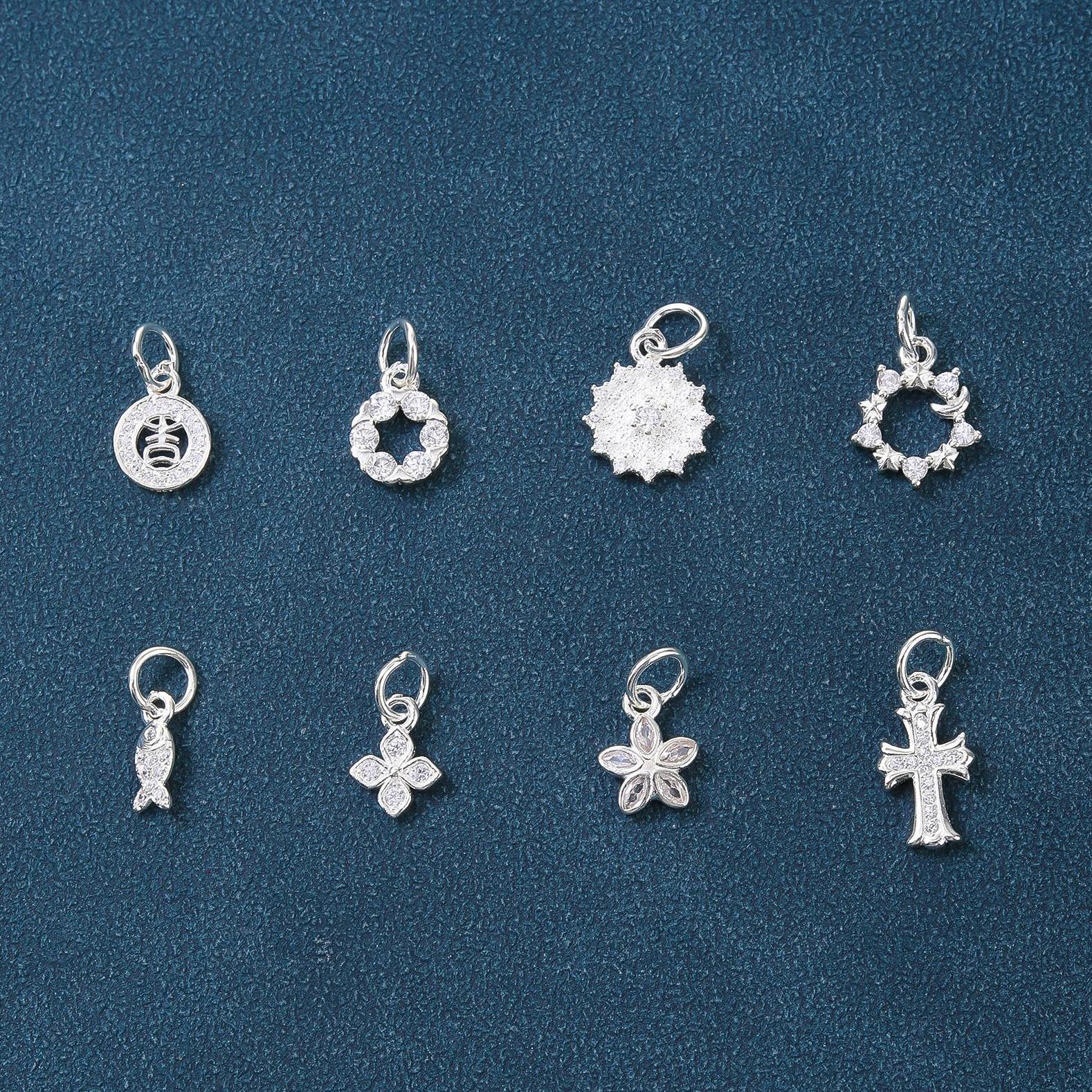 S925纯银镶钻锆石雪花吊坠四叶草十字架挂件小鱼花圈挂饰diy配件