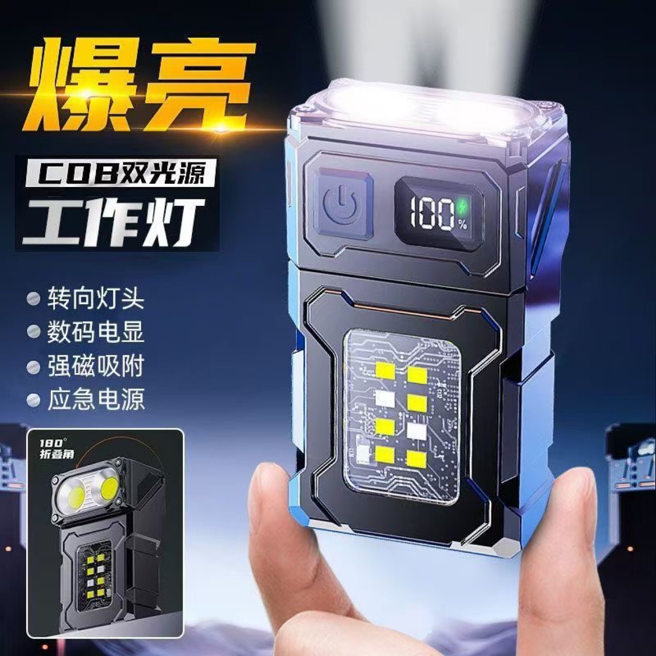 新型ミニキャンプライト屋外多機能携帯照明COB大汎光懐中電灯付磁気吸引作業灯