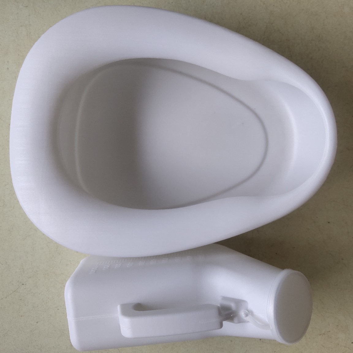 仕様 便器,白い女性用尿びん (蓋なし),白い男性用カバー付き尿びん