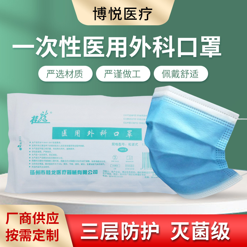 桂龍牌は医療用外科マスクを一度に使用して独立して包装し、10個のバッグ100個のバッチを作る