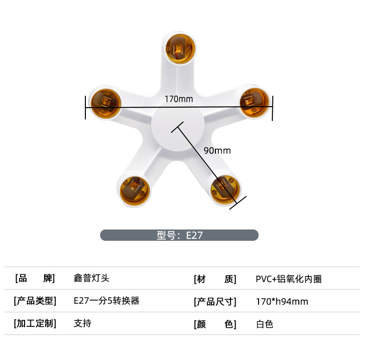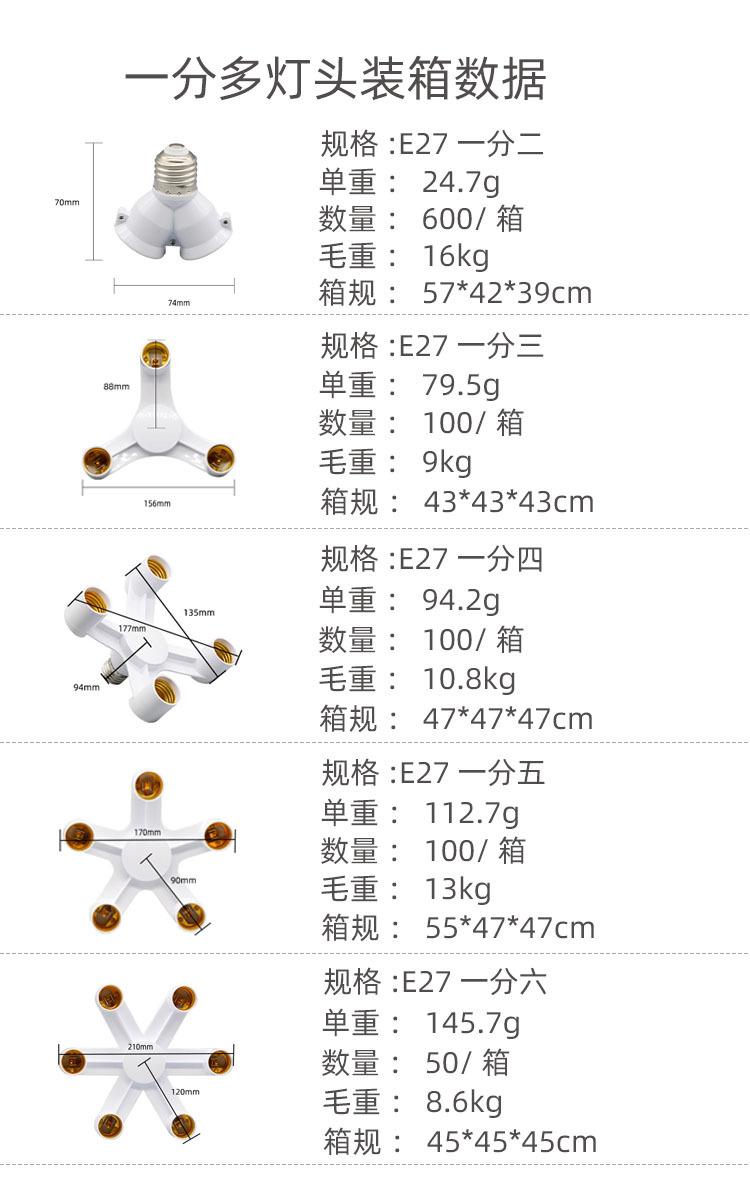 メーカー直供e27口金変換器e27口金変換器変換口金一分多変換口金