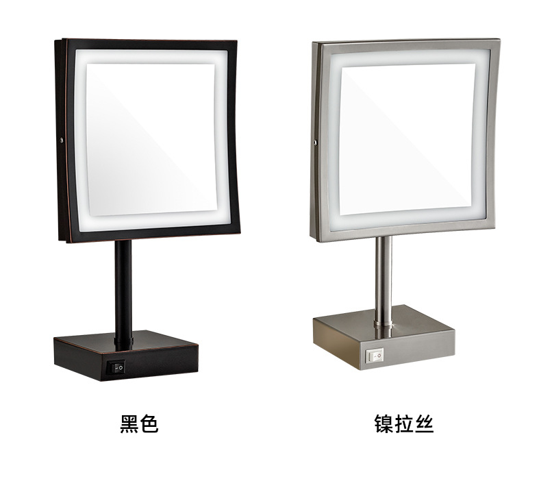 化粧鏡 ホテル卓上鏡 LEDライト付き拡大鏡 正方形美容鏡 ヨーロッパ風片面鏡