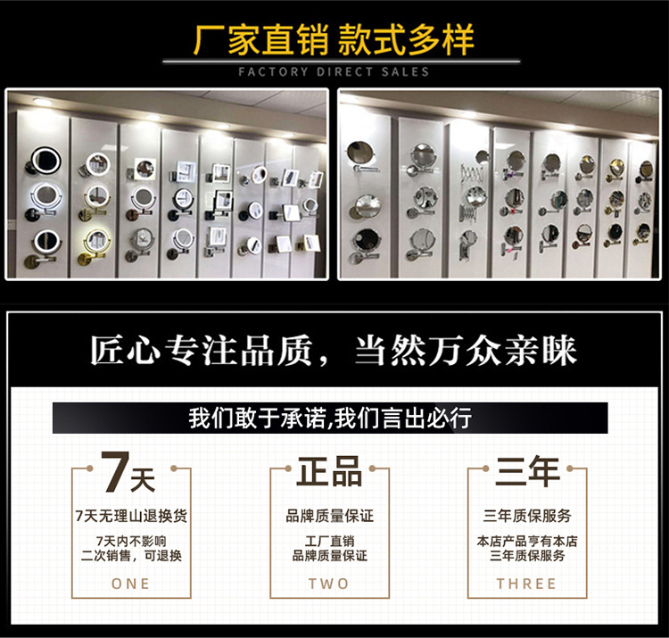 化粧鏡壁掛け鏡家庭用ステンレス両面伸縮回転ハイビジョン折り畳み浴室鏡3倍拡大鏡