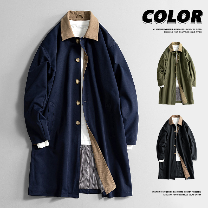 8XL新款长款风衣男潮流夹克复古灯芯绒领休闲夹克加大(控价158)