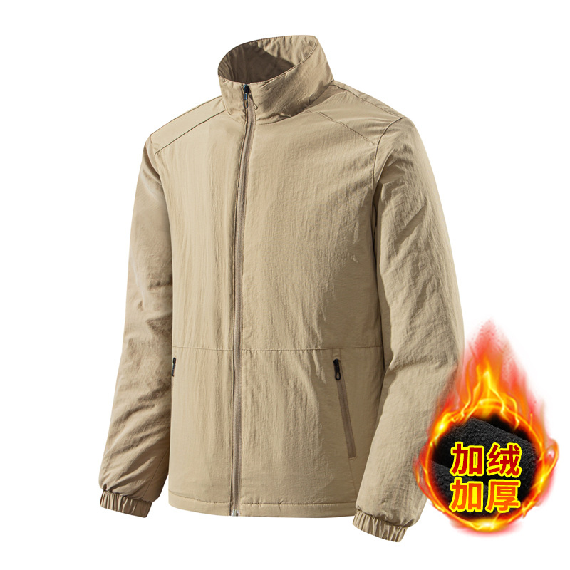 春の青年側縫い挿し袋春と秋の青いカジュアルな立襟のまっすぐな裾の現物のファスナーは帽子の皮の服とつながっていません。