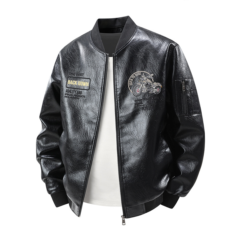飞行夹克秋季皮衣外套潮胖子机车服加肥加大码刺绣时尚立领男装
