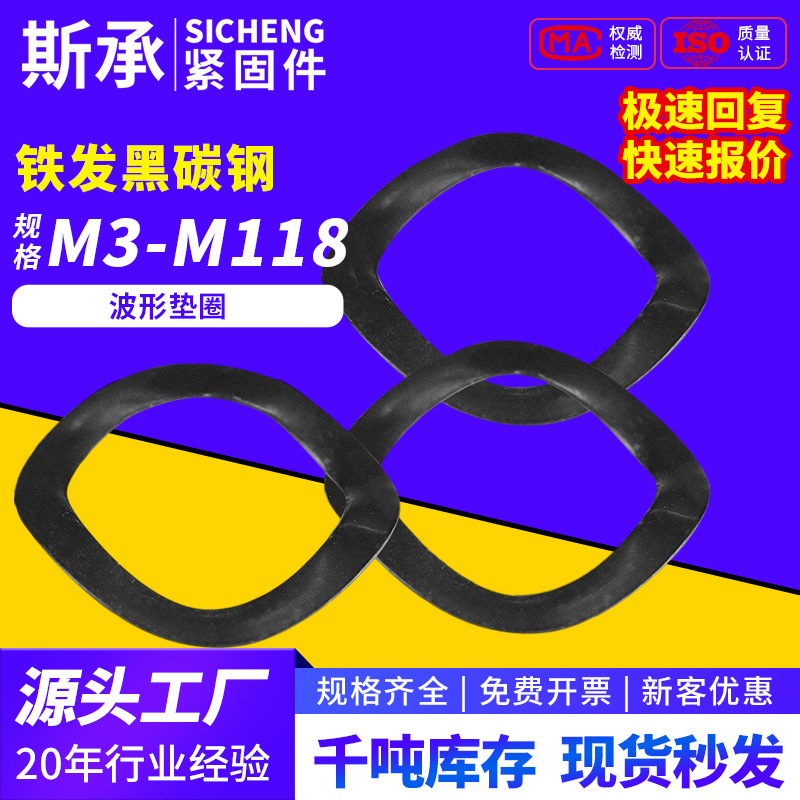 鉄髪黒波形ワッシャー波型弾性ワッシャー3波ピーク波形スプリングワッシャーM3M4M5M6M8-M16