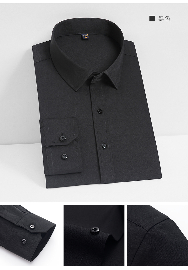 白色衬衫男长袖纯色男士衬衣韩版宽松免烫商务黑色薄款韩系棉寸衫
