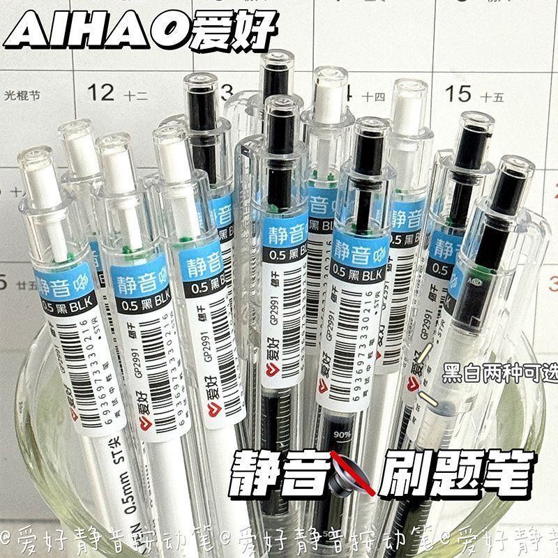 爱好GP-2991静音按动笔ins学生考试专用速干ST头0.5mm黑色刷题笔