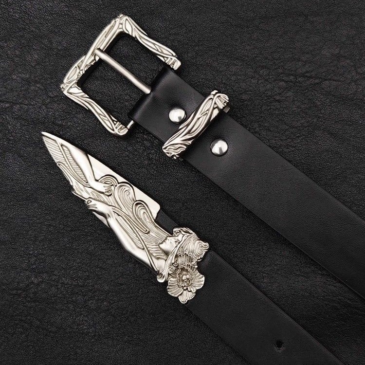 复古金属雕花腰带男搭牛仔裤2025新款黑色皮带设计感小众男女同款