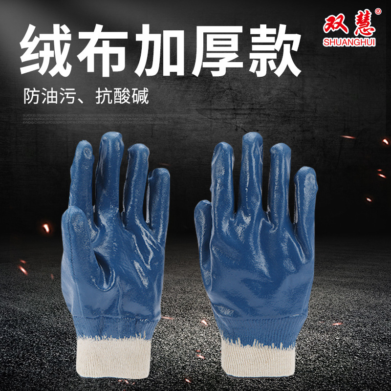 丁腈全浸宽口帆布劳保手套耐磨防油耐酸碱防腐蚀械加工加油站汽修