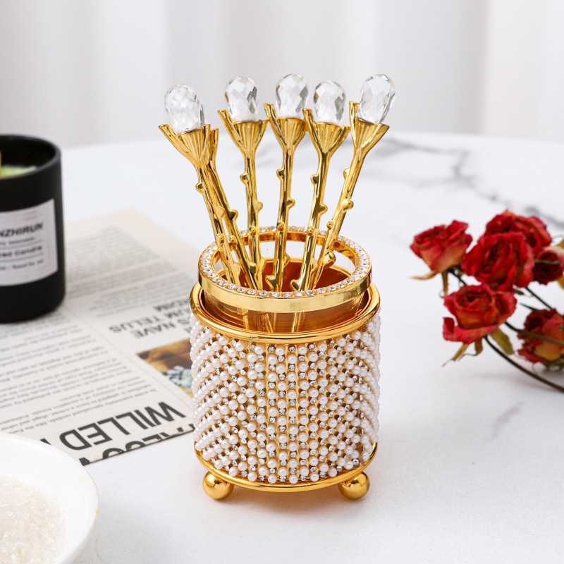 欧式勺子筒收纳盒高档厨房台面勺子餐具酒店用品水果蛋糕勺套装