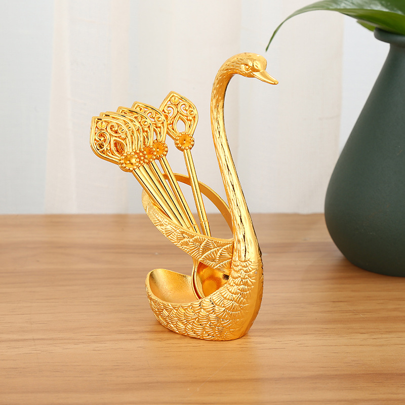 天鹅座合金创意水果叉餐具座餐桌咖啡勺子收纳架餐厅酒店西餐整理