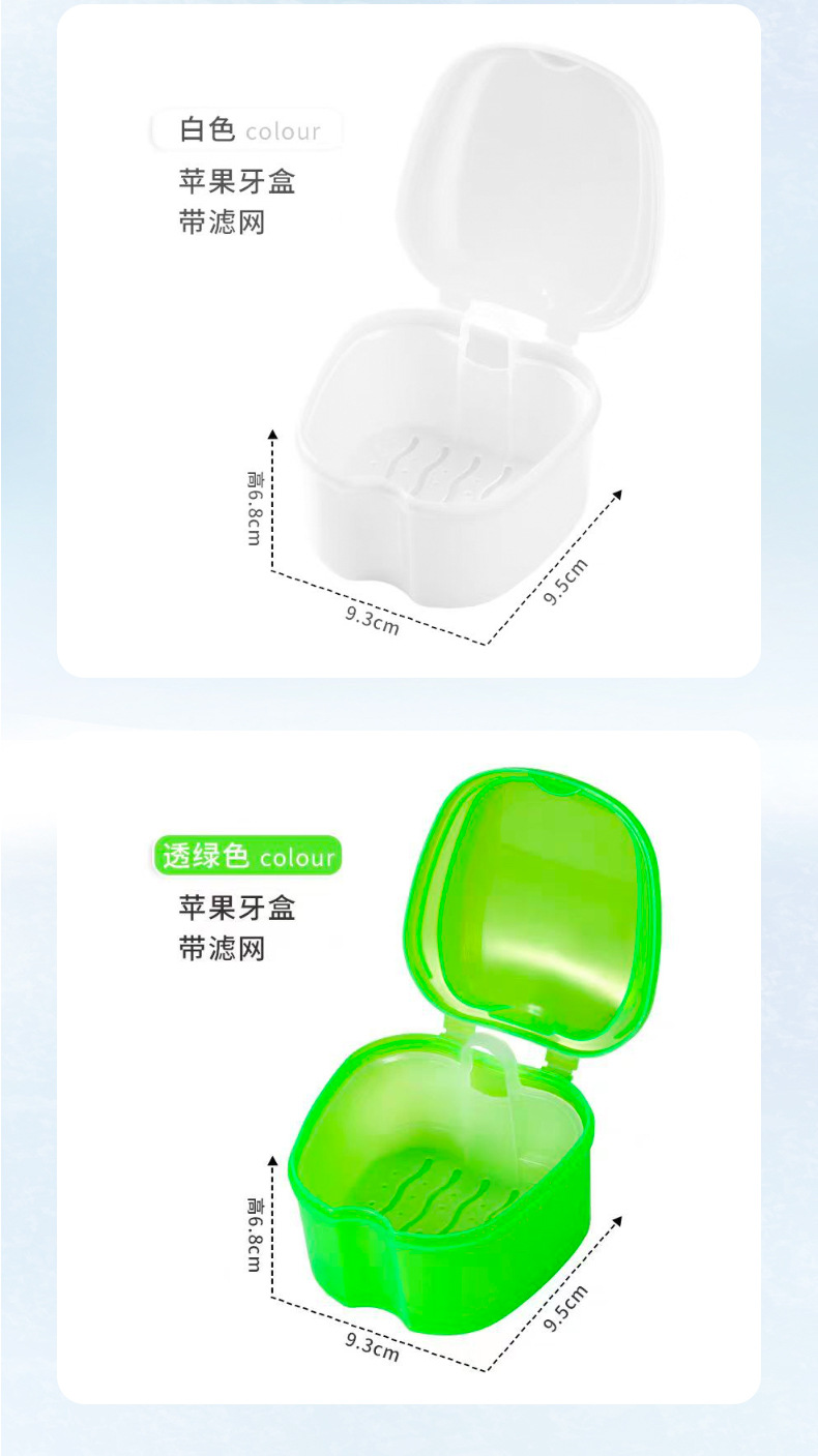 フルマウス義歯ボックス、リンゴ型歯保管ボックス、義歯ターンオーバーボックス、フィルター付き義歯浸漬ボックス、ソース工場卸売