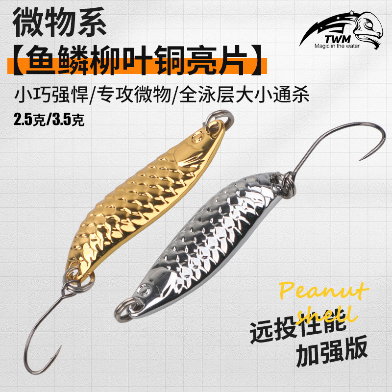 TWM魚鱗ダイカスト高比重真鍮柳葉スパンコール遠投金属微物路亜餌馬口白条口