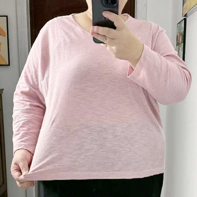 200斤300斤秋冬加肥大号モーデール手触り底シャツ長袖tシャツ女装工場直髪
