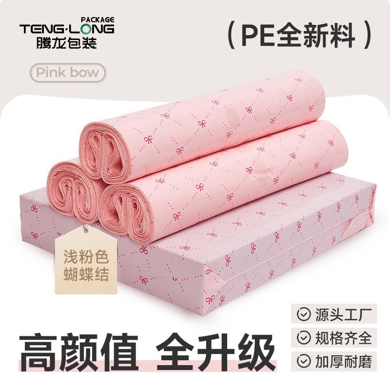 速達袋 新素材 速達袋 厚手12ミクロン ピンクのリボン付き速達袋 梱包用速達袋 ins風