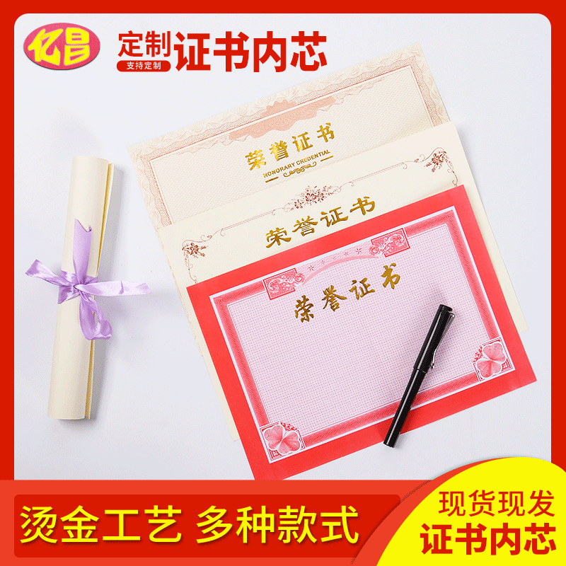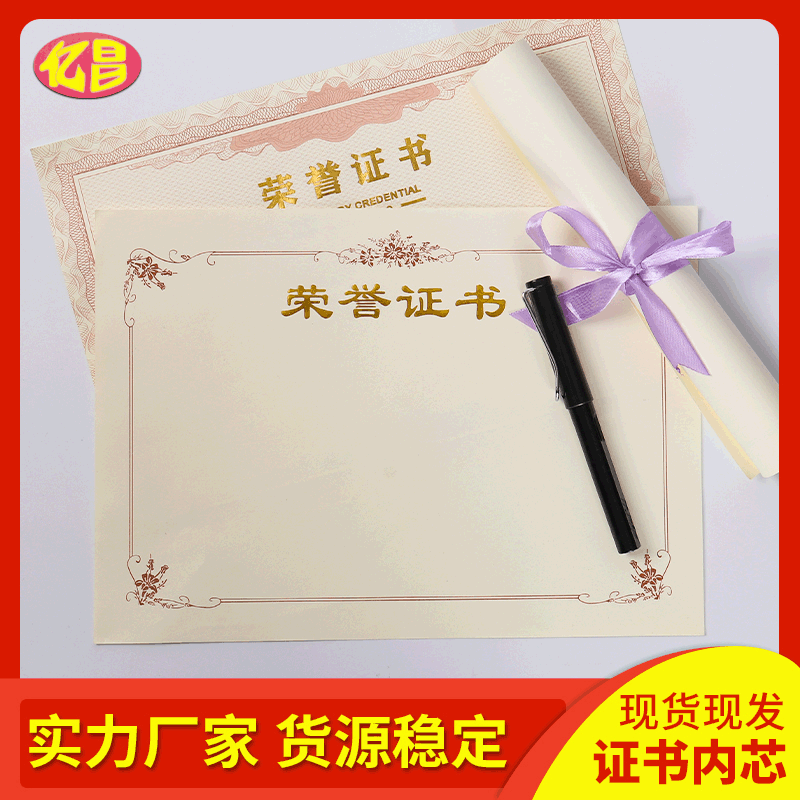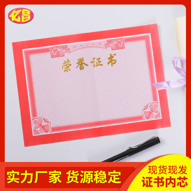 名誉証明書内芯紙印刷内容空白紙12k8k6k企業授賞証明書内ページ