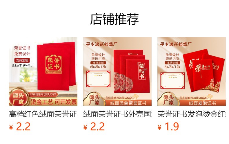 卸売りの栄誉の証明書の赤いスエードの面のアイロンの金の横の縦の版の証明書の結納書の6k8k12kの栄誉の証明書のカバーの表紙