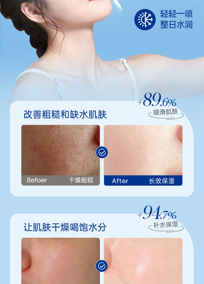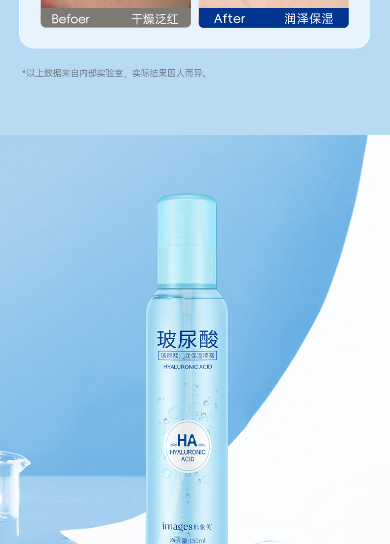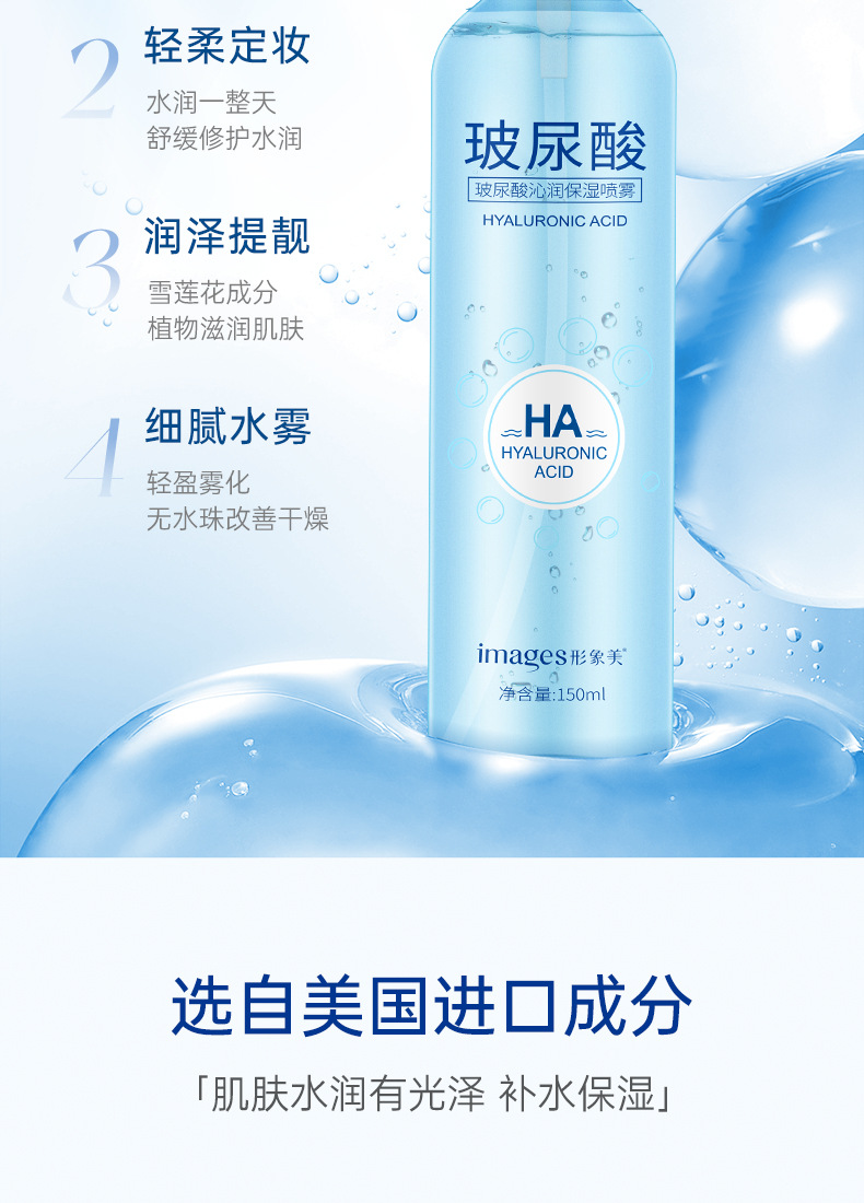 イメージの美しいヒアルロン酸の清潤保湿スプレーは水を補います。