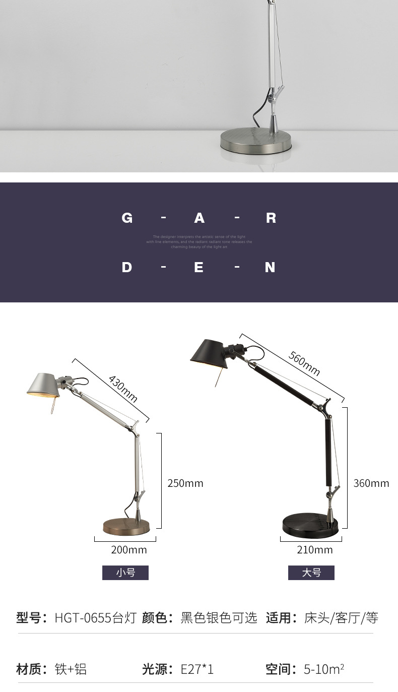 中古工业风长臂铸铝伸缩摇臂台灯卧室书房床头咖啡厅复古装饰灯