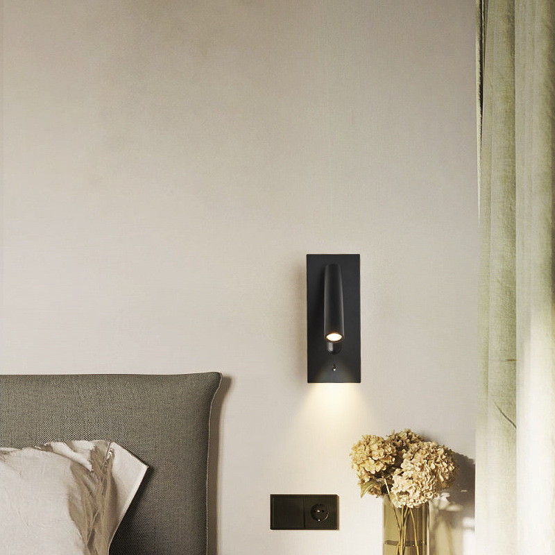 現代のシンプルな組み込みホテルの客室のベッドの壁の明かりは、USBインターフェイス付きの寝室のスポットライトを調節することができます