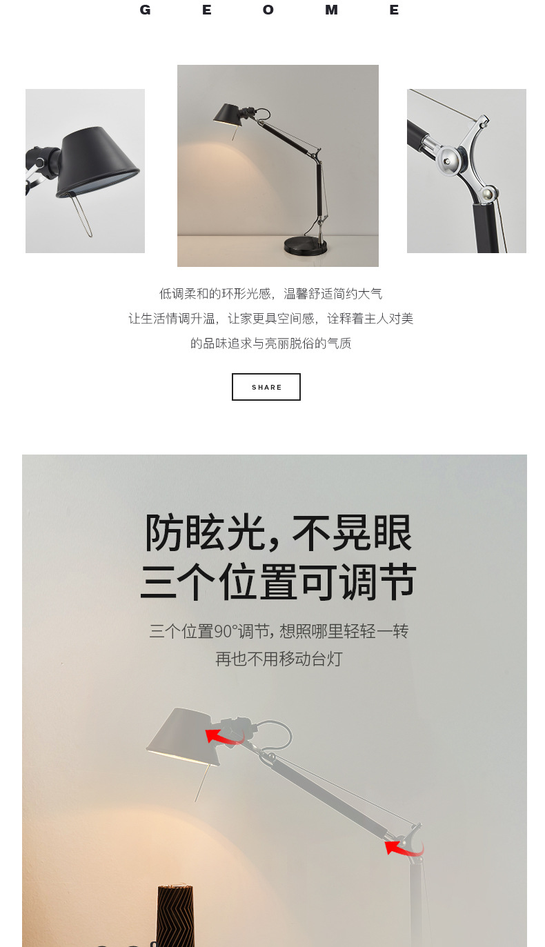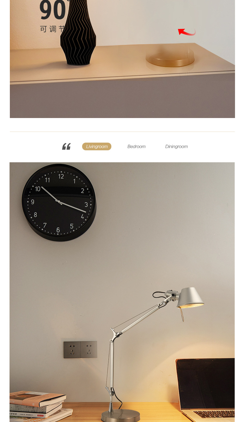 意大利设计师可调节摇臂伸缩壁灯中古个性创意卧室书房床头阅读灯