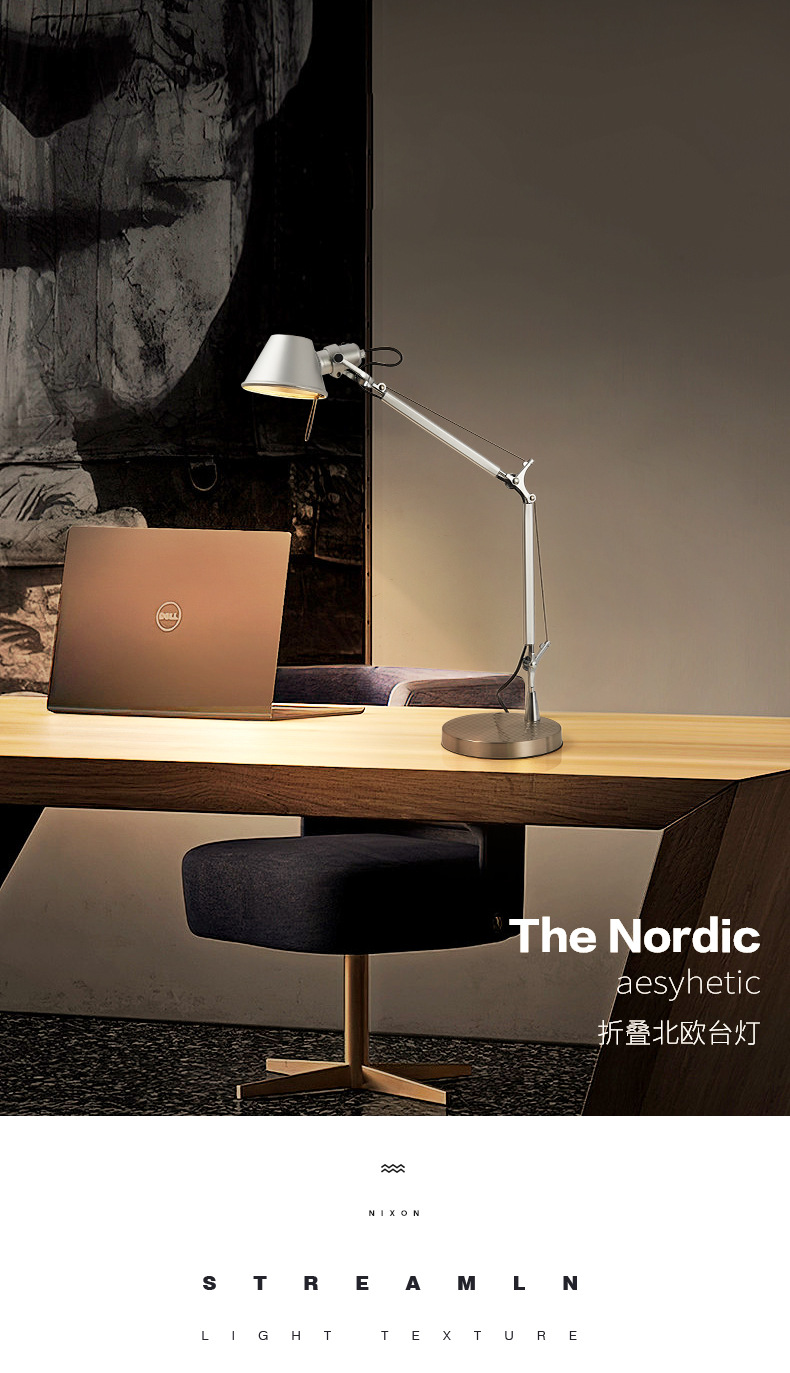 北欧モダンシンプルオフィス学習デスクランプ、クリエイティブで軽やかな高級感、折りたたみ式ロングアーム、寝室ベッドサイド雰囲気ランプ