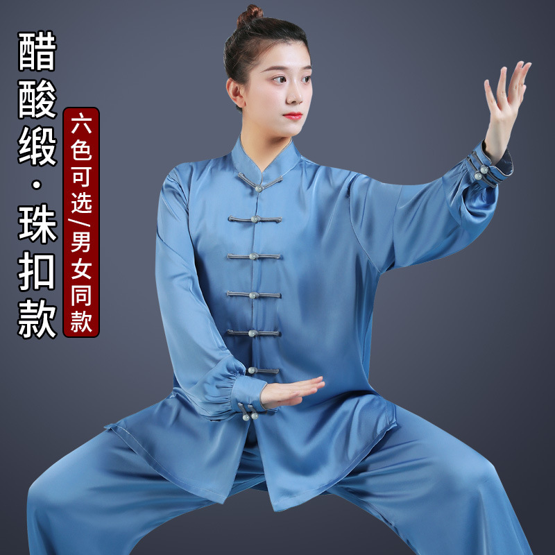 ソース工場直販綿プラスシルク太極拳スーツ女性練習スーツメンズ春夏太極拳武道パフォーマンススーツ