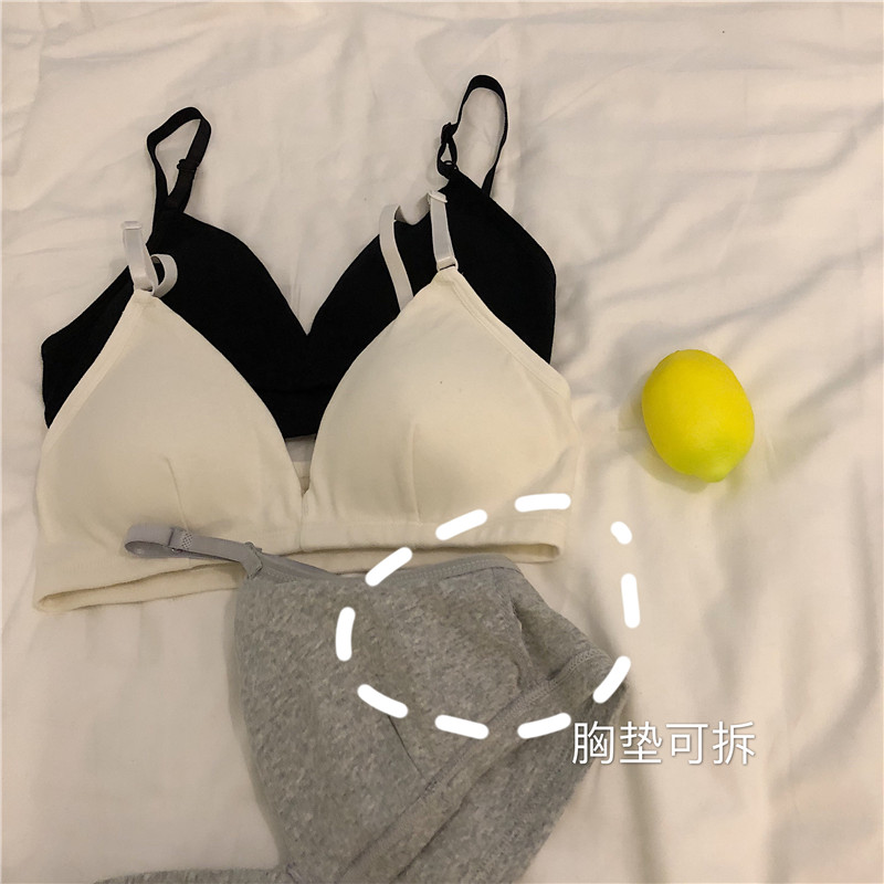フランスの三角カップのブラジャーの小さい胸の細い帯のスチールリングの下着の美背の平胸の学生の少女のガーターは胸の薄い金を拭きます。