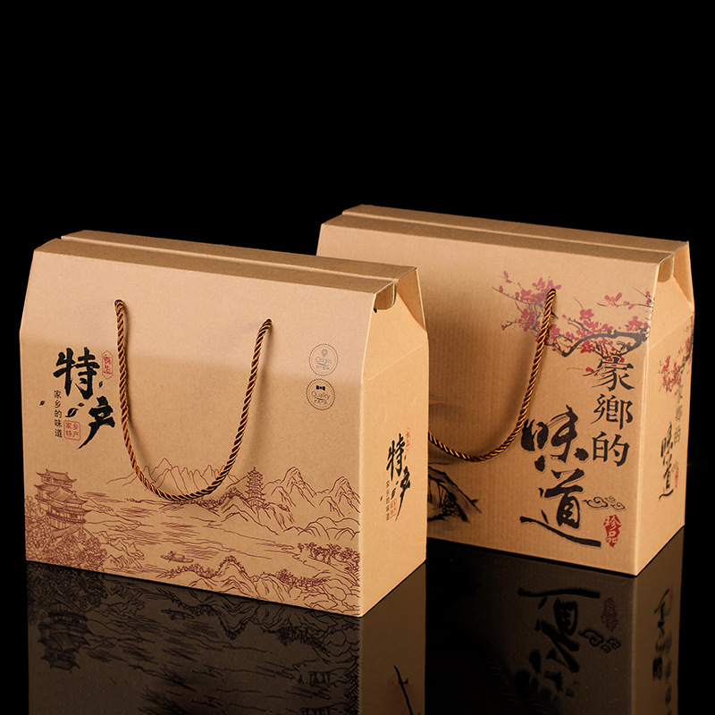 クラフト紙包装箱、地元の特産品、段ボールギフト、ポータブルユニバーサルスポットギフトボックス、ギフトプラスロゴ
