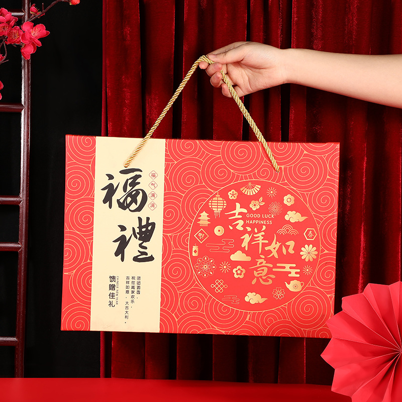 福礼年物ギフトボックスお土産プレゼント包装空箱国潮年物手提げギフトボックス厚金加印ロゴ