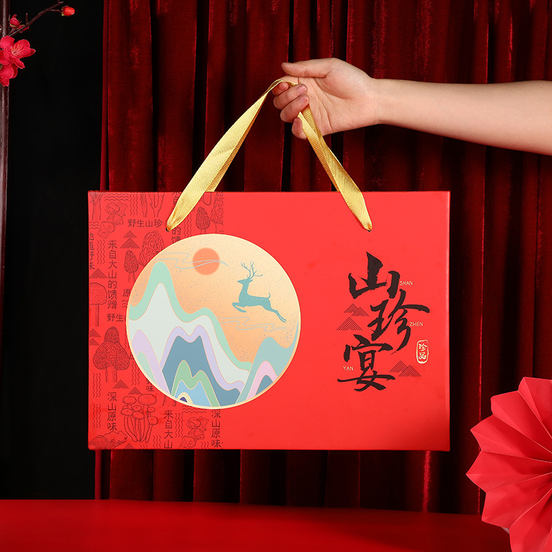 山珍宴年物ギフトボックス卸売り熟食ベーコン特産品包装箱汎用手提げギフトボックス空箱メーカー