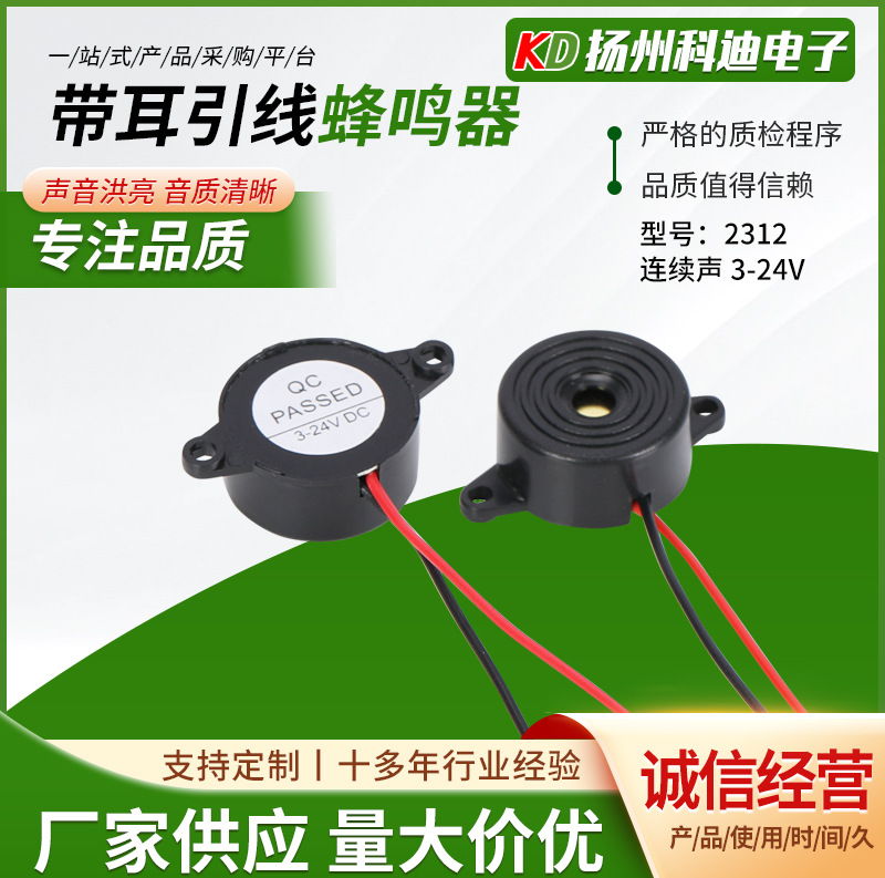 耳付きリード線4216断続音ブザー3-24V 42*16mm圧電アクティブ断続音ブザー