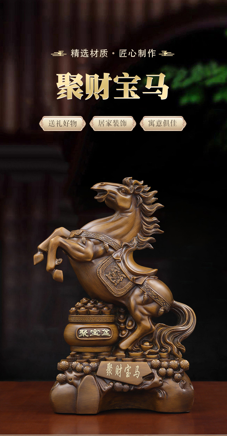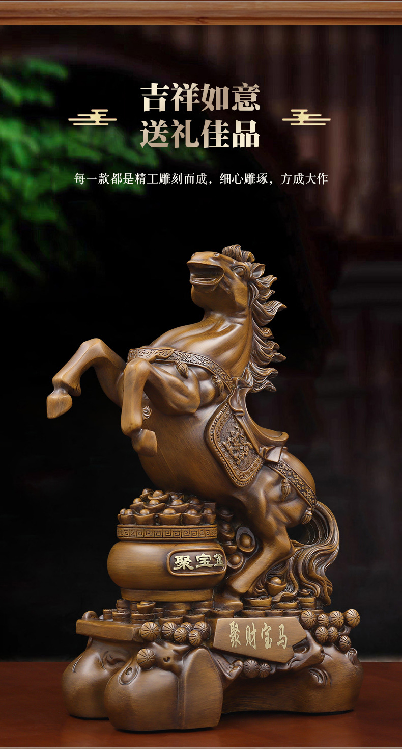 メーカー卸売り中国式家庭客間テレビキャビネット樹脂工芸品装飾招財オフィス生肖馬置物
