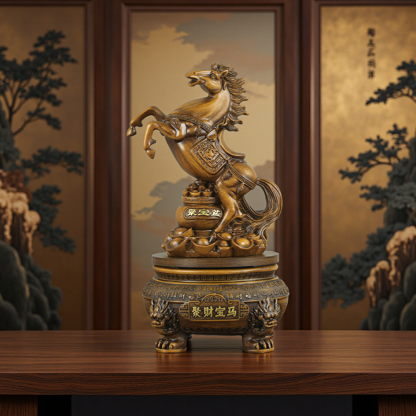 新款聚宝盆可旋转聚财宝马摆件老板办公室桌面装饰品乔迁开业礼物