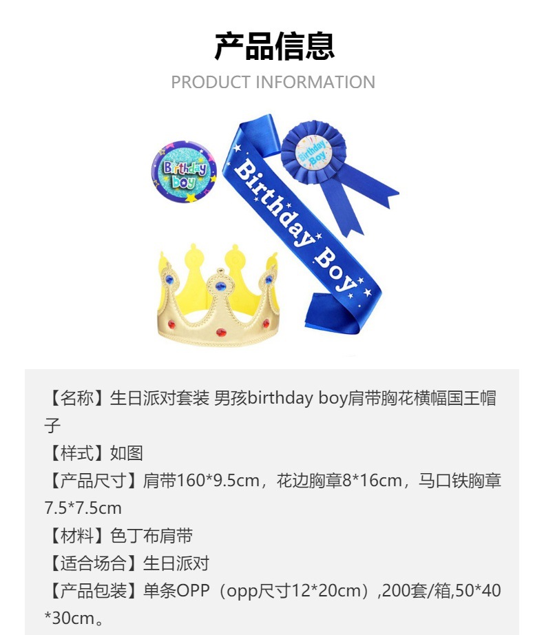 メーカー現物誕生日パーティーボーイ誕生日セット肩ひもコサージュバナー王帽子飾り道具