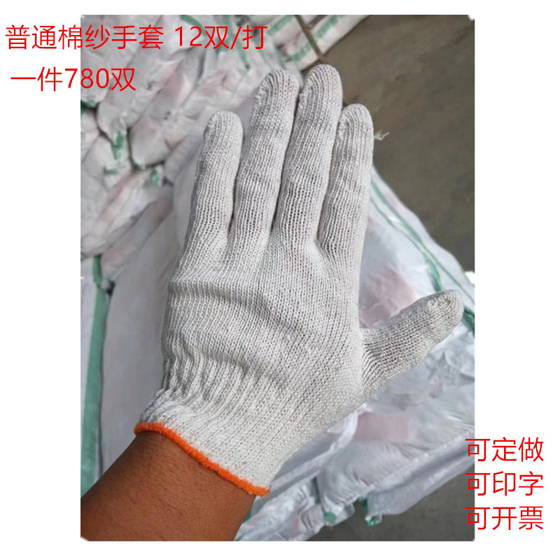 メーカー労働保護綿ガーゼ手袋耐摩耗性滑り止め肥厚建設現場作業ライン手袋ランプシェード綿ブルーエッジナイロン手袋
