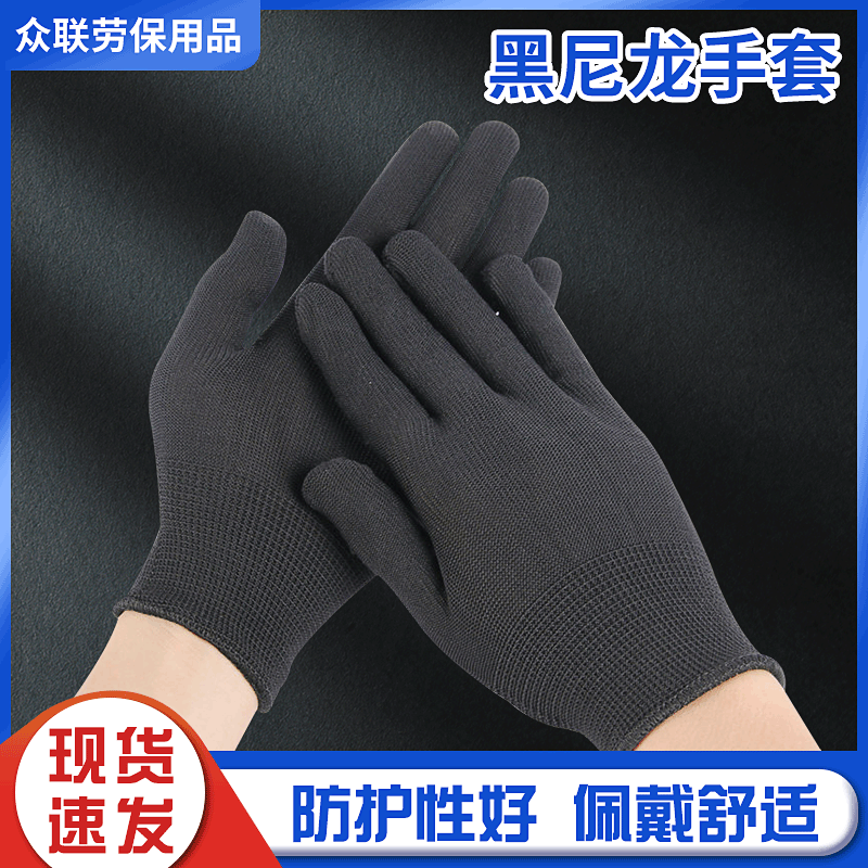 卸売労働保護手袋 13 ピンナイロン手袋黒綿糸手袋作業保護手袋ナイロン作業手袋