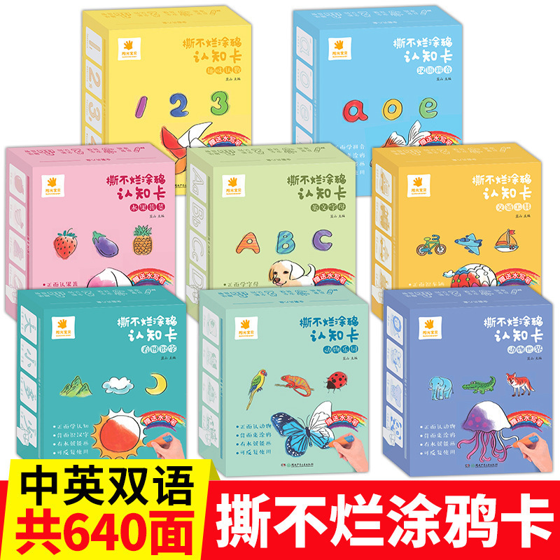 落書き認知カード全セット8冊の英語双語幼児啓蒙早教認知塗り絵正規版