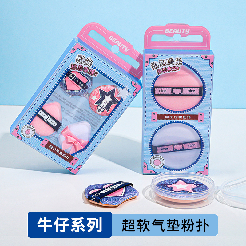 デニムシリーズメイクアップパフ、ドライパウダーパフ、エアクッションパフ、女の子向け多仕様親水性ウェット&ドライパフ