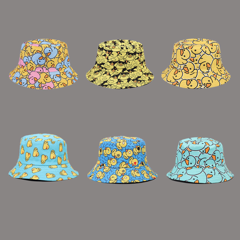 跨境速卖通热销款印花小鸭子渔夫帽欧美时尚双面戴遮阳盆帽现货批