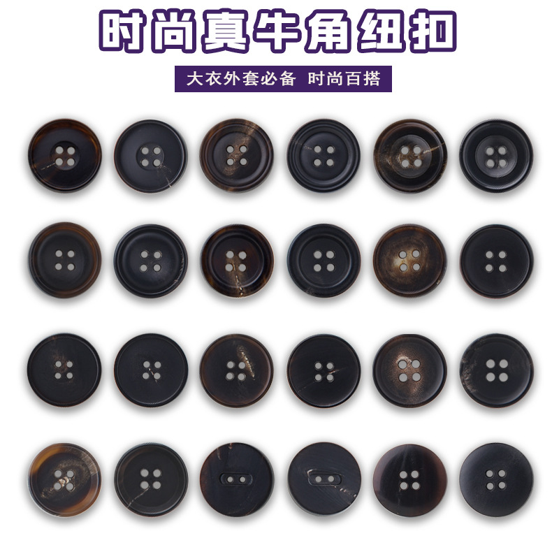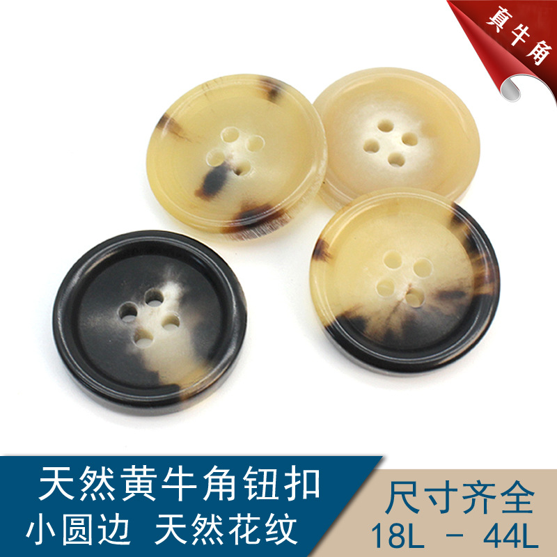 メーカー直販天然真牛角ボタン四眼二眼円形ボタン円辺高級スーツコート風衣