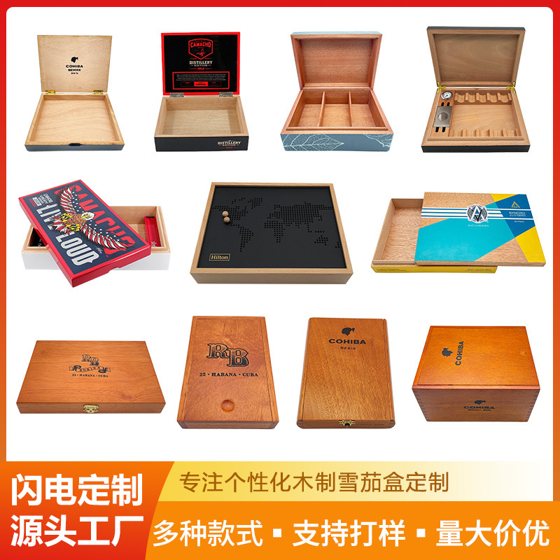批发订制雪松木雪茄盒木盒方形翻盖高档烤漆雪茄实木盒子木盒定制