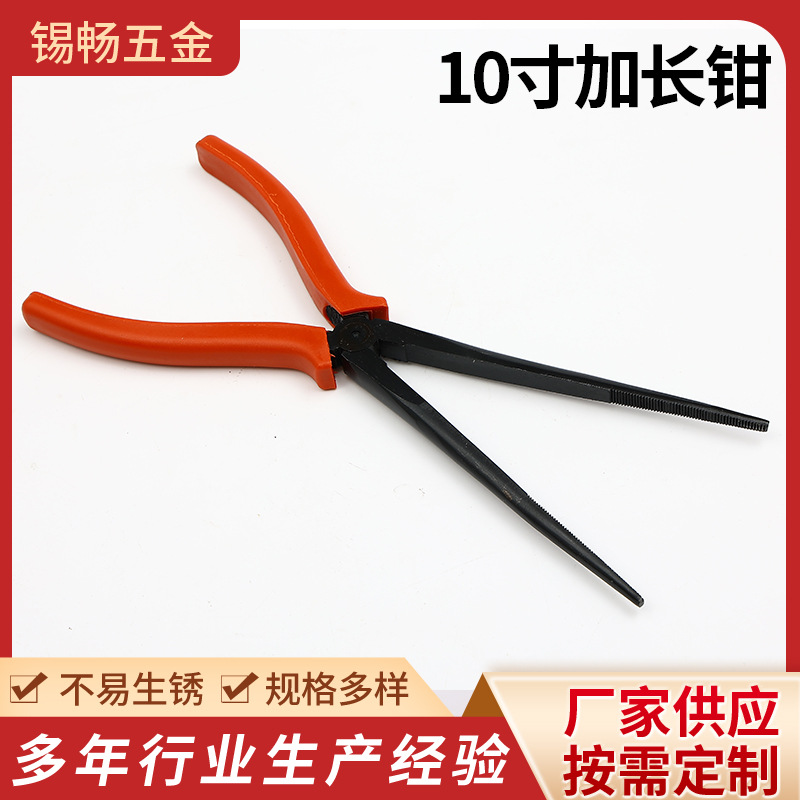 10寸加长钳尖嘴钳夹持钳有牙带齿加长尖咀钳特长型 尖口省力
